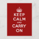 Röd Vit Håll Lugnet och Fortsätt Vykort
