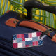 Röd, vit och blå bagagebricka