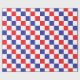 Abstrakt digital konst av röda och blå färg-fyrkanter i en kontrollerad form med vitt i de alternerande fyrkanterna.