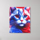 Röd vit och blå neonkatt med anerikanskt Kanvastryck av Flagga