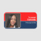 Denna professionella namnskylt har ett namn i vitt på den övre röda bakgrunden och titeln eller företagsnamnet nedan på en blå bakgrund på ena sidan av designen. Ersätt mallfotot med ditt foto eller din logotyp. En fyrkantig bild fungerar bäst. Anpassa textfälten eller redigera med hjälp av designverktyget för att välja en teckensnittsstil, storlek och färg som du föredrar.