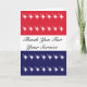 Rött vitt och blått tackkort i lycklig har stjärnor i röd och blå bakgrund.perfekten är utformad för att uttrycka tacksamhet på veterandagen.Klicka på personlighetsknappen om du vill anpassa den med din egen text.Om du vill ha den utan text tar du gärna bort den nämnda texten från mallen.