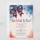 Denna design har 4 juli baby shower tema "Röd vit och förfallen" med USA-flagg inspirerad båge band, röd vit och blå akvarell bakgrund. Perfekt för könsneutral patriotisk baby shower. Anpassa den med dina evenemangsuppgifter för att göra den helt din!