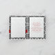 Röd, vit och svart damast tackkort