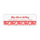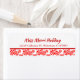 Anpassade returadressetiketter med skript och kursiv stil i rött på ett julbakgrundsmönster av röda och vita virvlande pepparmyntkonfekt.