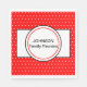 Personliga engångspappers servetter för familjeåterträff. Anpassa med din familjs efternamn i versaler. Klicka för att anpassa för att öka/minska familjenamnet. Roliga vita prickar på klarröd bakgrund med utseendet av dubbla tallrikar och vita servetter. Glad sommarstämning för sammankomster med familj och vänner för picknick och grill. Originalkonst och design © TamiraZDesigns.