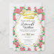 Denna färgrika, släta, mjuka och måleriska vita och röda rosfyllda bakgrund framhävs med en guldbokstavsdesign i handskrift som säger "You're Cordially Invited" (Du är hjärtligt välkommen) högst upp med en tunn kontur runt omkring. Rubriken sitter högst upp på en unik ram som förstärker den glada känslan av detta lyckliga tillfälle. Kortet är anpassat så att du kan skriva in din personliga information. All min konst, som inkluderar bakgrunder, bokstavskonst och ramar, skapas med stolthet helt utan AI och utan konst från tredje part. Med andra ord är varje objekt 100% skapat av mig – Christie Taylor.