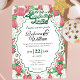 Denna färgrika, släta, mjuka och måleriska vita och röda rosenfyllda bakgrund accentueras med en grön handritad typsnittsdesign som säger "You're Cordially Invited" (Du är hjärtligt välkommen) rubrik utan en kontur runt den. Rubriken sitter högst upp på en unik ram som förstärker den glada känslan av detta lyckliga tillfälle. Kortet är anpassat för att du ska kunna skriva in din personliga information. All min konst, som inkluderar bakgrunder, bokstavskonst och ramar, skapas med stolthet helt utan AI och utan tredje parts konstverk. Med andra ord är varje objekt 100% skapat av mig – Christie Taylor.