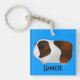 En gullig lite röd-och-vit försökskaninnyckelring med ett anpassadenamn eller formulerar över grunden.