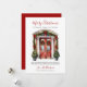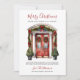 Röd ytterdörr för vattenfärg, God jul Julkort