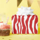 En uppdaterad take på ett djurt tryck för klassiker - zebra ränder i djup läppstift som är röd på en vitbakgrund