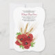 En slående blommig inbjudan med djupa röda anemoneblommor och vetestjälkar. Vattenstämpelskorset kan dras till valfri plats, göras större eller mindre (+-) eller tas bort. (<a href='http://www.freepik.com/free-vector/coloured-flowers-design_1053539.htm'>Designad av Freepik</a>). <br/><br/>Kortet är lätt att anpassa med din text, teckensnitt, teckensnittsfärg och val av sex papperssorter.<br/><br/>Inte exakt vad du söker? Alla våra produkter kan utformas för att passa dina behov utan extra kostnad.<br/><br/>Kontakta oss bara på askcottonlamb@gmail.com<br/><br/>Koordinerande produkter tillgängliga: