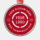 Anpassningsbarnas prydnadsföremål innehåller information om företagets logotyp och anpassningsbar om redigerbar röd bakgrund, modern bakgrund och trendig i färg. Välj "Klicka för att anpassa ytterligare" för att justera storleka för logotypen och bakgrundsbilden färg.
