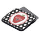 Ett elektronikfodral för lärare som presenterar en illustration av ett rött äpple som dekoreras med en svart gräns, en svart hjärta med vitpolka dots och den vittext något att säga "LÄRARE.", Bakgrund är svart med vitpolka dots.