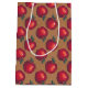 Linda Baysinger hack målning av röda mogna äpplen, på brun bakgrund. Tillfoga din egna text på lablen.