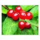 Ljusröda bär med kvardröjande regndroppar mot levande grönt lämnar nära. Naturfotografi av Susan. Den här bilden finns på många kort och produkter i min huvudbutik Smilin'Öga Treasures. Gå till min profilsida för att hitta länkar till alla mina butiker.
