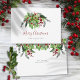 Röda Bär Vattenfärg Grönska Jul Julkort