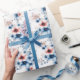 Röda & Blå Blommor på Vitt Presentpapper