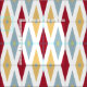 Roligtens moderna väv i mitten av århundradet har 3 stora diamanter med 2 stjärnor i mitten, i en kombination av färg röd, blå och gult. Detta skulle göra ett färgstarkt tillägg till ditt syningsprojekt.