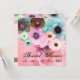 Eleganta vita tealblåa rosor och anemoneblommor på rosa bakgrund med damaskmotiv,. Denna klassiska, unika design är perfekt som bröllopsinbjudan, platskort, spara-datum, tack-kort, brudshower, söta 16-års födelsedagar, fester, förlovningsfirande eller nästan vilken händelse som helst du önskar!