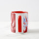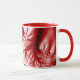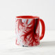 Den här unika röda kombinationen mugg har en abstrakt fractal konst som liknar blodkärl med små svarta Mandelbrot-set. Underbar gåva till en doktor eller medicinskt student som också har kärlek-frakttaler.