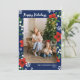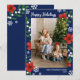 Önska dina vänner och släktingar God Jul med detta vackra blomsterfotots julkort med ditt familjefoto omgivet av fina röda blommor och gröna kvistar med vita bär och små snöflingor. Anpassa med ett foto och ditt namn och året. God Jul i ett djärvt vitt teckensnitt. Personligt julkort med blomsterdesign med blommor och bärkvistar mot en blå bakgrund. Vackert God Jul-kort i blått med blommor och vita bär och snöflingor tryckt med ditt foto och familjenamn.