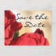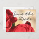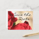 Ett vackert makrofoto av röda blommor på ett 'Spara Datum'-postkort för att tillkännage er bröllopsdag. Anpassa det med er text på baksidan.