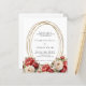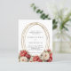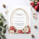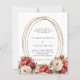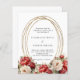 En vit bakgrund dekorerad med rött och vitt ro, blommigtar. En faux guld oval ram. Anpassa och lägg till namn och information. 1 lakan = 1 inbjudan tryckt kant till kant.