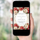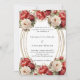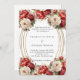 En vit bakgrund dekorerad med rött och vitt ro, blommigtar. En faux guld oval ram. Anpassa och lägg till namn och information.