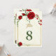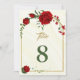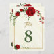 elegant anpassade bordsnummer kort rödblommor och grönt löv blek guld marble bakgrundsbild bordsnummer faux foil och glitter