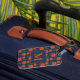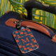 Röda blommor Mörk blått Monogram Mönster Bagagebricka