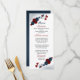vacker röd och marin blåa blommor och elegant löv botaniska bröllop-menyn.