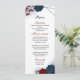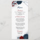 vacker röd och marin blåa blommor och elegant löv botaniska bröllop-menyn.