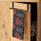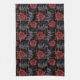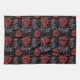Röda blommor på svart bakgrund med guldfärgad figurer.