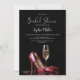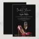 Bjud in dina vänner och familj att delta i din bröllopsfest med denna eleganta inbjudan som visar röda blomstermönstrade skor med hög klack och ett glas champagne. Du kan enkelt lägga till alla nödvändiga detaljer i den anpassningsbara texten. Välj mellan olika papperstyper och hörnstilar för att göra dina inbjudningar unika. Dessutom har du möjlighet att ladda ner inbjudan om du föredrar ett digitalt format.