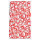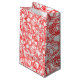 Den här presentsäcken har en modern design i mitten av århundradet av röda koncentriska cirklar som är spridda över hela designen.