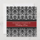 Inbjudningar för förnyande för elegant bröllopvow i rött svartvitt blom- damastast mönster med fullständigt anpassadetext att inkludera din vowförnyandeceremoni specificerar.