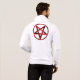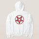 Röd, inverterad, strukturerad pentagram i cirkel, på vit bakgrund. Ockult symbol. 666