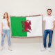 En drakes öde: En ny flagga för kelterna --- Inspirerad av den rika tapeten av keltisk historia och mytologi, innehåller flaggan traditionell keltisk symbolik och en kraftfull röd drake. Flaggans färgpalett, med livfull grön och krispig vit, frammanar de frodiga landskapen och den varaktiga anden hos de keltiska länderna. - Midpunkten i designen är en majestätisk röd drake, med utsträckta vingar och utskjutande klor. Denna orädda varelse, en symbol för makt, styrka och skydd, avbildas som "springer mot sitt öde", vilket antyder en känsla av syfte och orubblig beslutsamhet. Drakens eldröda färg kontrasterar vackert mot de svala tonerna av grönt och vitt, och skapar en visuellt slående och minnesvärd bild. - Denna flaggdesign har potentialen att se fantastisk ut på en mängd olika produkter. Dess djärva färger och slående bildspråk gör den till ett perfekt val för kläder, accessoarer, heminredning och andra varor. Till exempel kan flaggan tryckas på t-shirts, huvar, flaggor, banderoller, gobelänger, kuddar, väggkonst, shoppingväska, nyckelringar och mobilskal. - Sammanfattningsvis gör flagg