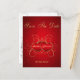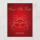 Elegant bröllop illustration: 2 röda hjärtan med gyllene virvlar och prydnadsföremål på röd bakgrund.
