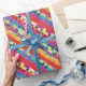 röda färgrutor, rand och färgpixlar presentpapper