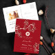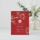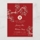 Orientala persikoblommor / plommons blomning, vårblommor i djupröd, elfenben och vit med en enkel rund dubbellyckasymbol. En elegant och romantisk blomster kinesisk tema wedding save the date tillkännagivande postkort design som är fantastisk, modern och klassisk.