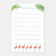 Röda flamingos och gröna palmlöv på vit Att göra-lista med linjerade anteckningar.