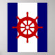 Det här är ett underbart tryck för någon som tittar för en nautisk text eller en text med ett strandtema. Har klassisk färg av rött, vitt och marint blått.