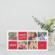 Förvandla dina hösthälsningar med det här stilrena och moderna julkortet, som har djärva röda rutor och ett glatt "God Jul" -meddelande i krispig vit text. Denna stilrena och horisontella design ger utrymme för en kollage med fem foton, perfekt för att dela familjeminnet, speciella ögonblick eller festliga ögonblicksbilder med nära och kära. Lätt att anpassa med vårt användarvänliga onlineverktyg - byt bara ut mallfoton mot dina egna bilder och anpassa meddelandet för att göra det riktigt till ditt eget. Gör den här julen oförglömlig med ett hjärtligt, anpassat vykort som vänner och familj kommer att värdesätta!