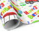 Fira en speciell liten pojkes tredje födelsedag med denna charmerande golftemerade mönster inslagna papper! Med en röd golfvagn parkerad bredvid en grönt är den här fina designen laddad med lekfulla detaljer en festlig födelsedagskalas, presenter och ett gäng lysande heliumballonger, inklusive ett stort nummer 3-ballong. Perfekt för en golfvänlig familj eller ett unikt tema för tredje födelsedag.
