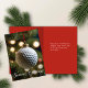 Eleganten viks julkort med ett närliggande foto av ett golfprydnadsämne boll som hänger på grenar i Julgran. Inuti kortet finns ett enkelt meddelande: "Kan din helgdag vara glatt och dina T-offers vara långa och raka", som trycks på en rik modern bakgrund i helgdag. Korttexter som är helt anpassningsbara. Behöver du hjälp? Kontakta oss om du behöver hjälp med att anpassa eller anpassa. Glad helg!