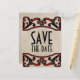 Elegant och chic Gotiska virvlar Spara datum vykort med en vintage falsk texturerad beige bakgrund och virvla flourishkanter i mörkrött. Denna antika design är perfekt för att tillkännage ditt gotiska eller vintagebröllop. Lätt att anpassa, lägg bara till dina bröllopsdetaljer i de tillgängliga textfälten. Klicka på "Anpassa det" för att hitta fler anpassningsalternativ.