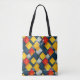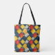 Denna djärva och färgglada design har ett dynamiskt mönster av röda, gula och blå diamantformer på en mörk bakgrund. Perfekt för dem som älskar geometriska mönster med en modern twist. De livfulla färgerna gör denna tote till ett iögonfallande tillbehör för alla tillfällen, som tilltalar individer med smak för unika och iögonfallande mönster.