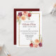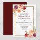 Praktfull burgunderröd blomvig bröllopsinbjudan med vacker guldbård och spansk text för spansktalande par. Ett elegant